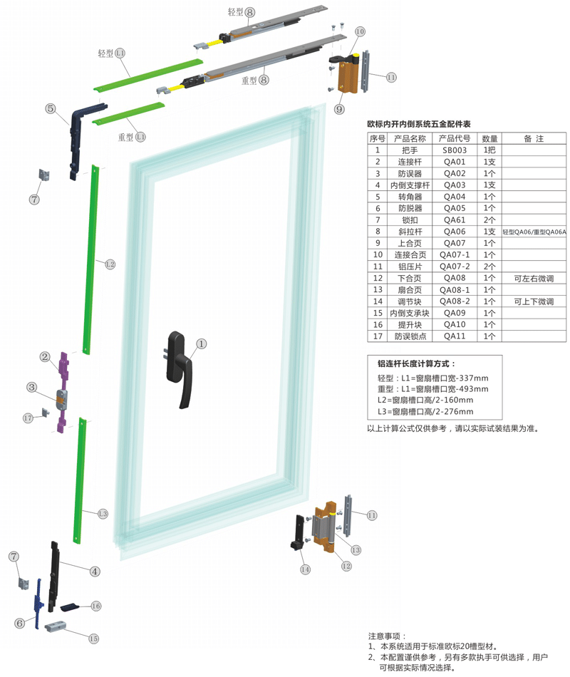 本系統適用于標準歐標20槽型材,本配置僅供參考,另有多款執手可供選擇。
